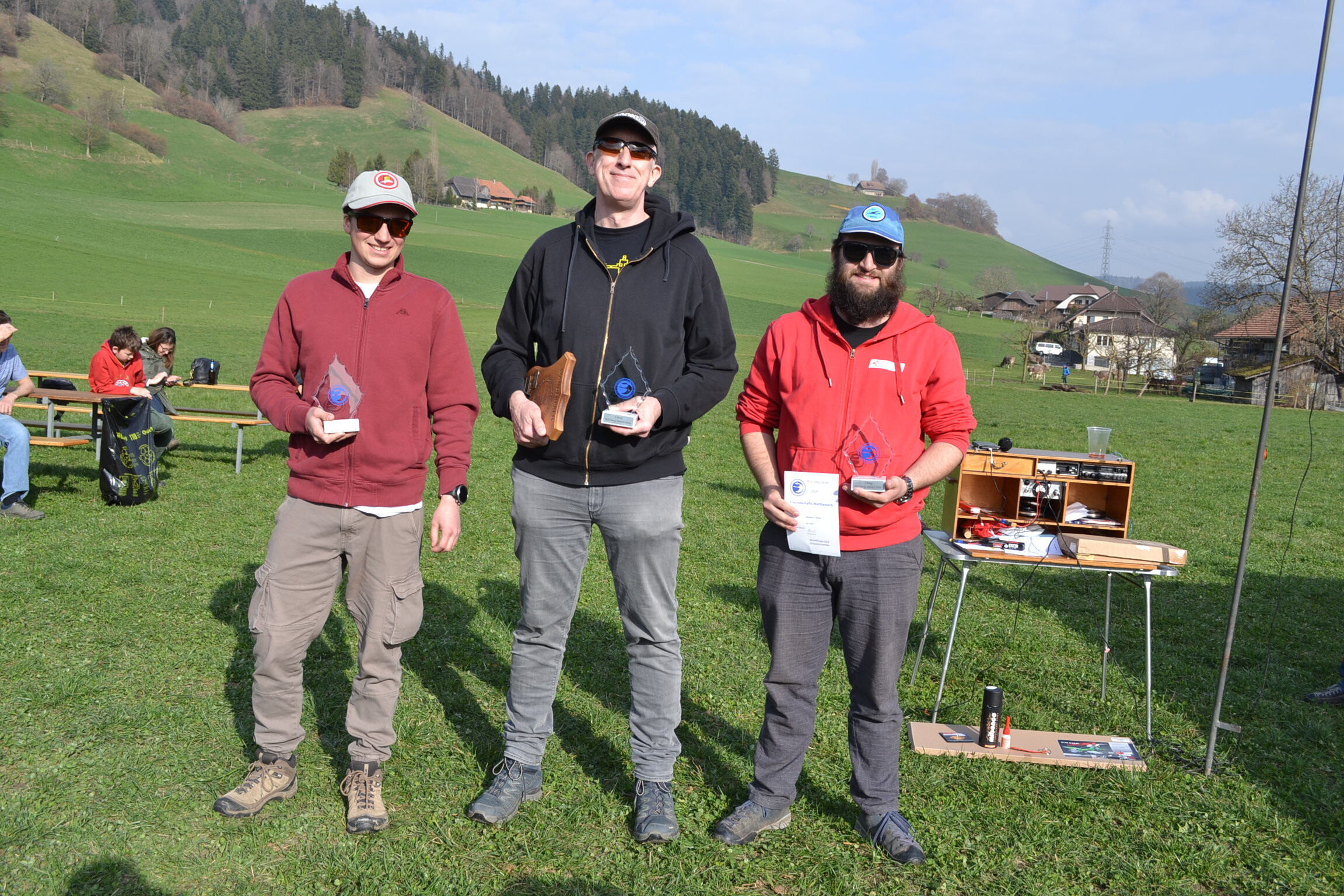 Das Podest vom Zäziwiler 2026 1. Platz Stephan Berger MV Bern, 2. Platz Nino Hiltbrand MG Frutigen, 3. Platz Oliver Rentsch, MV Bern